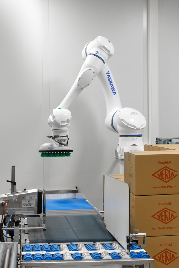 Der neue Palettierer ist nicht nur der erste Cobot im Einsatz bei Verla-Pharm, sondern der erste Roboter überhaupt. Die Anlage läuft seit der Installation störungsfrei und hat die hohen Erwartungen von Anfang an voll erfüllt. Und auch für AHM war es ein wegweisendes Erfolgsprojekt: „MRK hat Zukunftspotenzial“, ist sich Geschäftsführer und Projektleiter Hubert Asam sicher. „Unsere Kunden fragen zunehmend danach. Entsprechende Lösungen sind für uns nicht zuletzt ein Marketinginstrument – zumal die Roboter der Motoman HC-Serie von Yaskawa auch optisch sehr gelungen sind.“