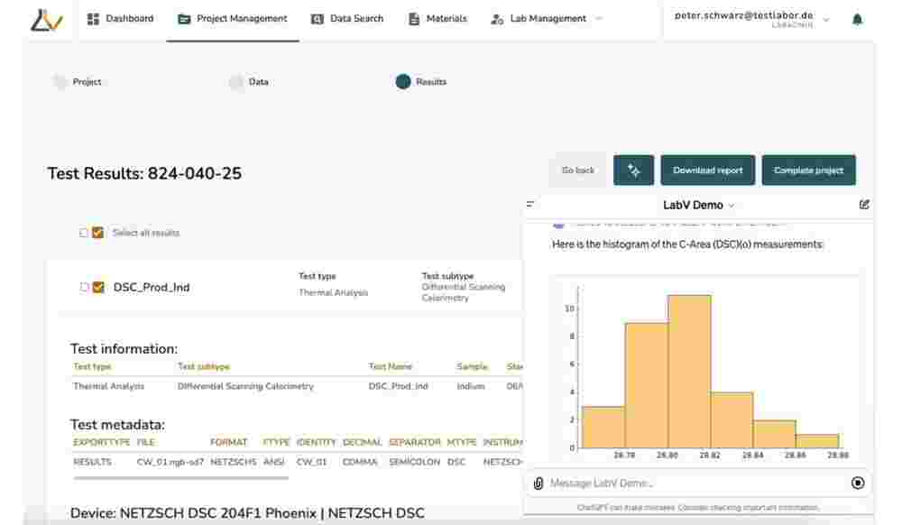 Der digitale Mitarbeiter von LabV unterstützt das Labor in seiner täglichen Arbeit und vereinfacht den Umgang mit komplexen Datensätzen. Labore können so Einblicke aus den Daten gewinnen, die bisher unerreichbar waren und das ohne Programmierkenntnisse oder manuelles Durchforsten in Tabellenkalkulationen. Die natürliche Sprachverarbeitung ist vergleichbar mit ChatGPT, so dass das Labor mit einfachen Befehlen neue Einblicke in seine Datenwelt gewinnt.