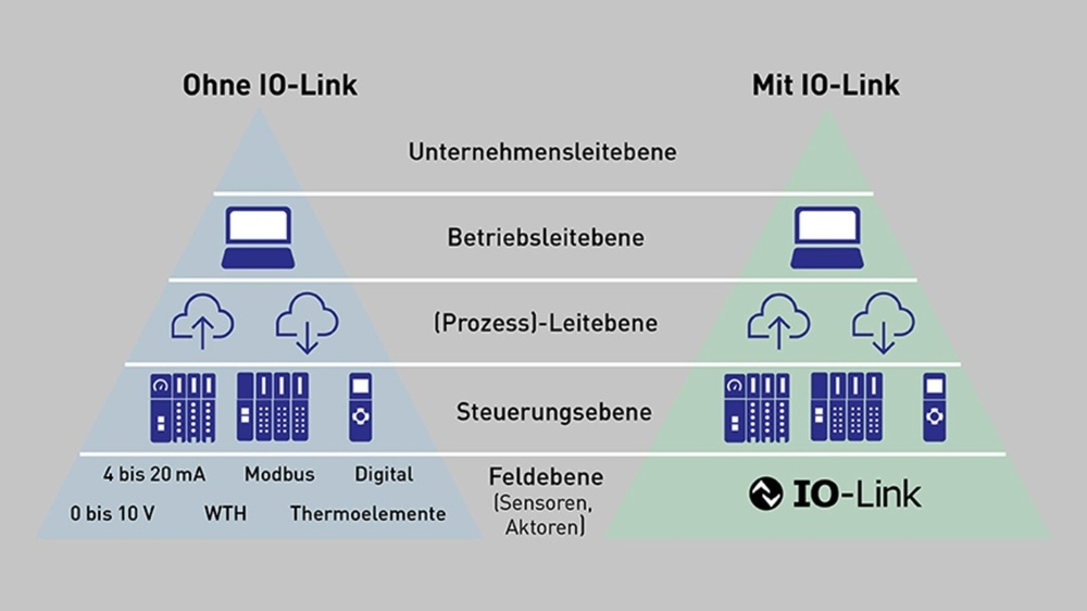 Mit IO-Link besteht die Möglichkeit, sowohl zyklische als auch azyklische Daten mit übergeordneten Ebenen auszutauschen. So können zum Beispiel Parameterdaten während des laufenden Betriebs in einen Sensor geladen oder Diagnosedaten ausgelesen werden. Dank einer Übertragungsgeschwindigkeit COM3 mit 230,4 kBaud und Zykluszeiten von teilweise weniger als 1 ms sind Daten schnell ausgetauscht und stehen in Sekunden zur Verfügung.