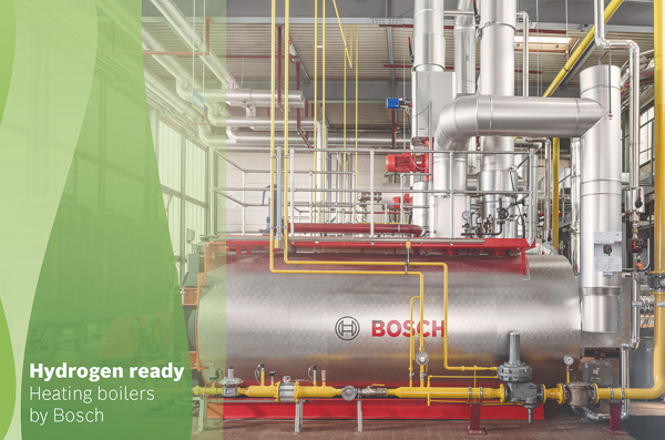 Klimaneutrale Heiz- und Prozesswärme: Industriekessel von Bosch lassen sich mit bis zu 100 Prozent Wasserstoff betreiben.